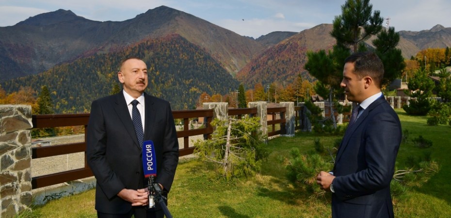 Президент Азербайджана Ильхам Алиев в рамках участия на заседании Международного дискуссионного клуба “Валдай” российским телеканалам.