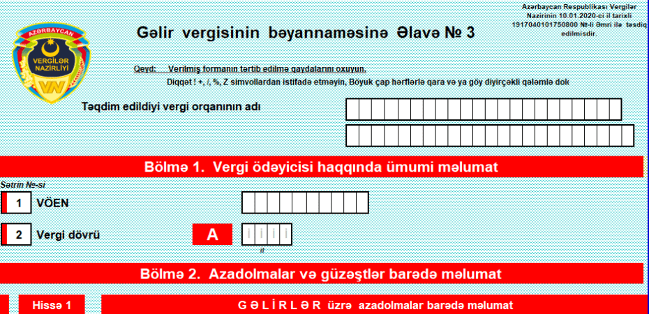 Министерство налогов Азербайджана утвердило формы подоходного налога, налога на прибыль, упрощенного налога, акцизного налога, декларации по налогу на добавленную стоимость и правила их составления.
