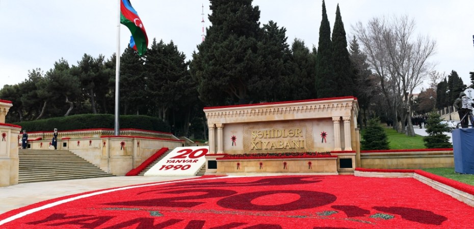 Президент Азербайджана Ильхам Алиев и первая леди Мехрибан Алиева почтили в День общенациональной скорби – 20 января память шехидов 20 января в Аллее шехидов.