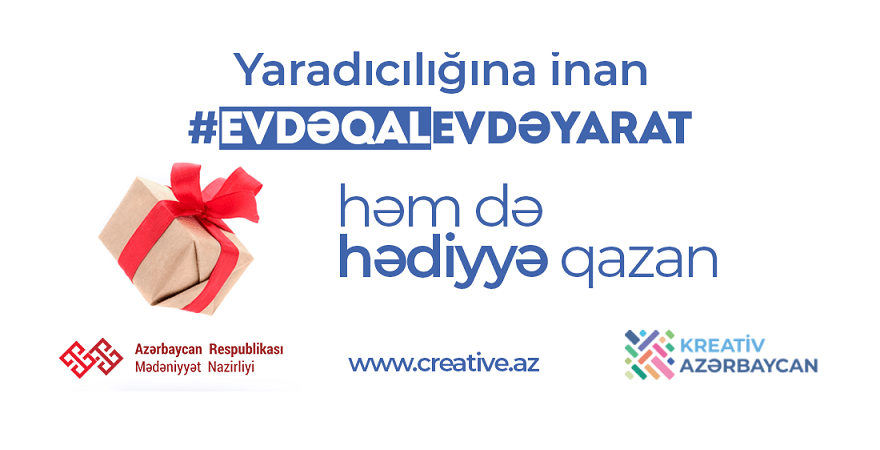 Чтобы подключиться к инициативе «Evdə qal evdə yarat», надо поделиться в социальной сети Facebook постом, представив свой креативный продукт или занятие, относящееся к сферам видео, фото, музыки, дизайна, кулинарии, литературы или изобразительного искусства. Пост нужно будет сопроводить хештегом #EvdəQalEvdəYarat. Если до 30 апреля работа наберет наибольшее число «лайков», значит, вы – один из победителей и вас ждут интересные подарки от Министерства культуры Азербайджана и портала «Креативный Азербайджан».