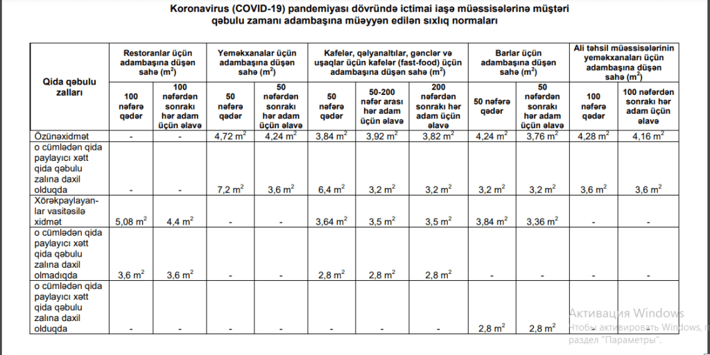 – прием клиентов в заведениях общественного питания должен быть в 2 раза меньше действующих норм и правил, и поэтому должна быть удвоена площадь, которая устанавливается на каждого человека;