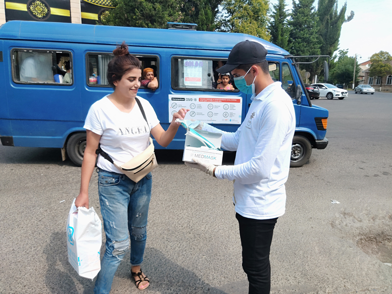 Акция, которая будет проходить в течение июля-августа, охватит граждан почти 20 городов и районов страны, которым планируется раздать более 20 тысяч медицинских масок.