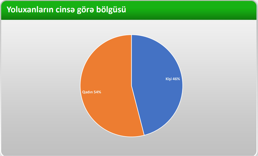 Ölkə üzrə koronavirusa yoluxanların 56.2% paytaxt Bakıya təsadüf edib. Azərbaycanda virusa yoluxanların 54% qadınlar olub, halbuki, dünya üzrə virusun qurbanı daha çox kişilər olub.