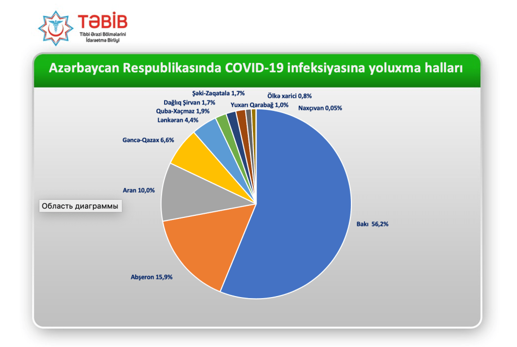 Regionlar üzrə yoluxma hallarının əsas hissəsi -15,9% Abşeron rayonunun, 10% Aran, 6,6% Gəncə-Qazax zonalarının və 4,4% Lənkəran şəhərinin payına düşüb. Yoluxanların cəmi 0.8% xaricdən gələn vətəndaşlardır.