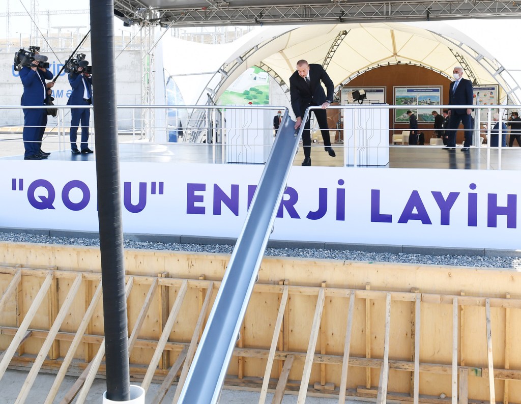 TIME rəsmi mənbəyə istinadən bildirir ki, dövlət başçısı, həmçinin 385 meqavatlıq “Qobu” Elektrik Stansiyasının təməlini qoyub.