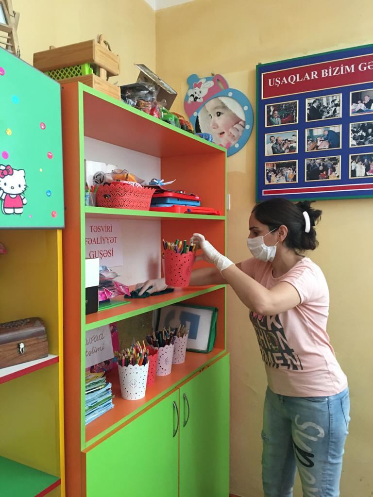 Bağçaların tərbiyəçiləri və texniki işçiləri bağçalarda geniş təmizlik, iməcilik, tibbi-profilaktik işlər görüb. İşçi personal hazırkı şəraitdə işləmək qaydaları barədə təlimatlandırılıb. Məktəbəqədər təhsil müəssisələrinin həyətləri, yataq, oyun, mətbəxləri və digər otaqları təmizlənib. Otaqların havalandırılması və təlimata uyğun dezinfeksiyası üçün tədbirlər həyata keçirilib.