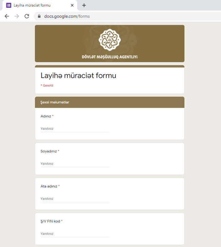 TIME rəsmi mənbəyə istinadən bildirir ki, layihəyə cəlb edilmək istəyən işsiz aztəminatlı şəxslər, o cümlədən əlilliyi olan şəxslər, şəhid ailəsi üzvləri, məcburi köçkünlər, ünvanlı sosial yardım alanlar və həssas qruplardan olan digər şəxslər Dövlət Məşğulluq Agentliyi tərəfindən hazırlanan “layihə müraciət formu”na (https://forms.gle/bJ4uBBB8fNPFeYyc9) daxil olaraq qeydiyyatdan keçə bilərlər.