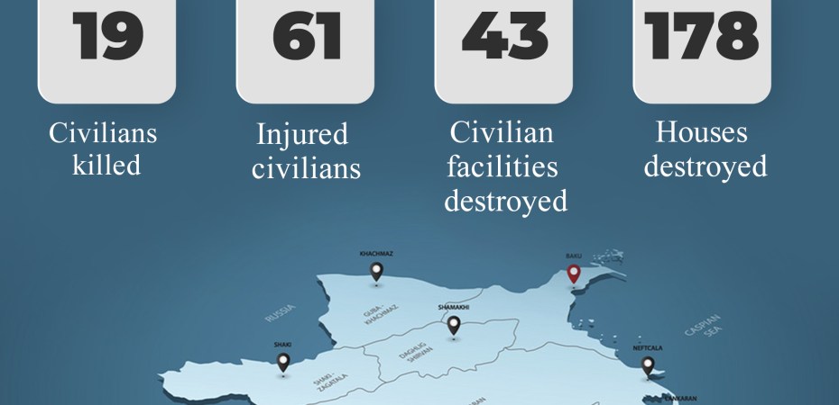 Düşmən təxribatı nəticəsində 181 ev, 44 mülki obyekt yararsız vəziyyətə düşüb.
