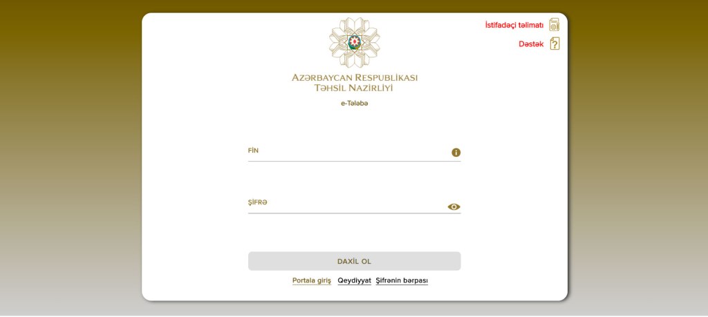 Tələbələrin qəbul olunduqları təhsil müəssisələrində qeydiyyatının aparılması üçün qeyd edilən müddətədək https://e-telebe.edu.az elektron portalına müraciət etmələri xahiş olunur.