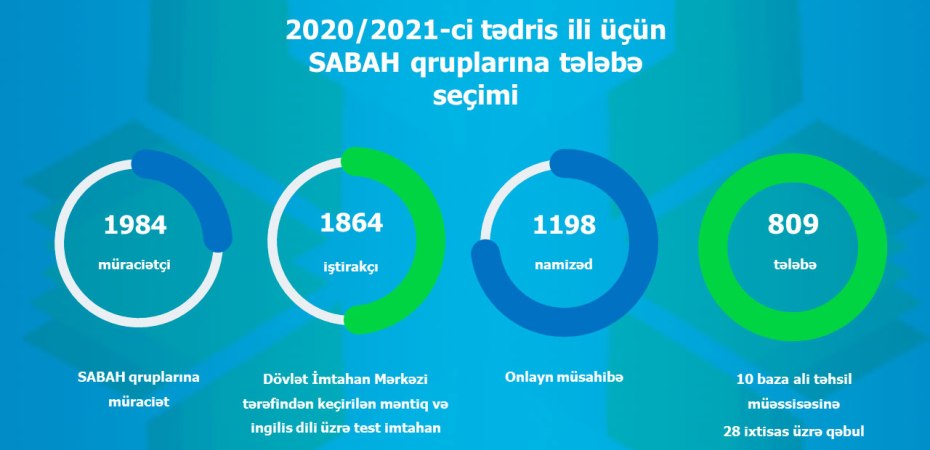 2020-2021-ci tədris ili üzrə ölkənin 10 baza ali təhsil müəssisəsinin SABAH qruplarına tələbə seçimi aparılıb. Sözügedən qruplara tələbə seçimi mərkəzləşdirilmiş qaydada üç mərhələdən (akademik göstəricilərin qiymətləndirilməsi, test imtahanı və müsahibə) ibarət olmaqla müsabiqə yolu ilə həyata keçirilir.