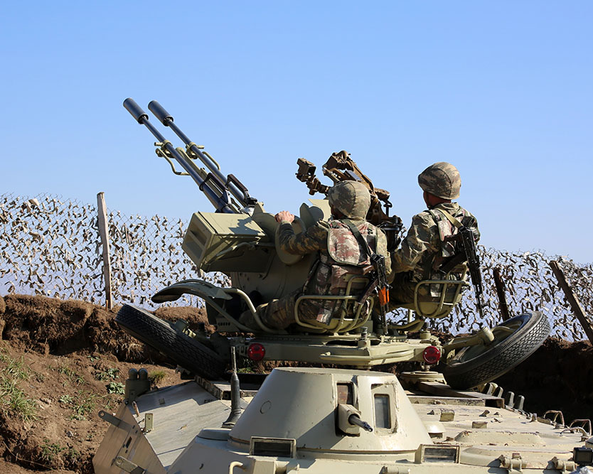Ön xətdə düşmənin qəfil hava hücumunu dəf etməyə hazır olan hava hücumundan müdafiə bölmələrimizdən birində zabit Allahverən Abbasov bildirdi ki: “Hava sərhədlərimizin etibarlı qorunması üçün aparılan döyüş növbətçiliyində əsas diqqət aşağı və ən aşağı hündürlükdə uçan hava hücum vasitələrinin vaxtında aşkarlanmasına, məhv edilməsinə və bölmələrimizin vaxtında xəbərdar olunmasına yönəldilib.”