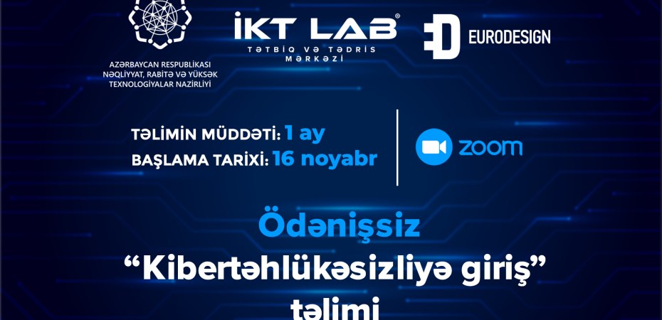 Nəqliyyat, Rabitə və Yüksək Texnologiyalar Nazirliyinin İnformasiya-Kommunikasiya Texnologiyalarının Tətbiqi və Tədrisi Mərkəzinin (İKT LAB) təşkilatçılığı ilə kibertəhlükəsizlik üzrə ödənişsiz təlimlərə start verilir.