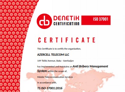 08/11/202009/11/2020 Aynur Vəliyeva Azercell ölkəmizdə “Antikorrupsiya idarəetmə sistemi” standartlarına uyğunluq sertifikatını alan ilk mobil operator oldu