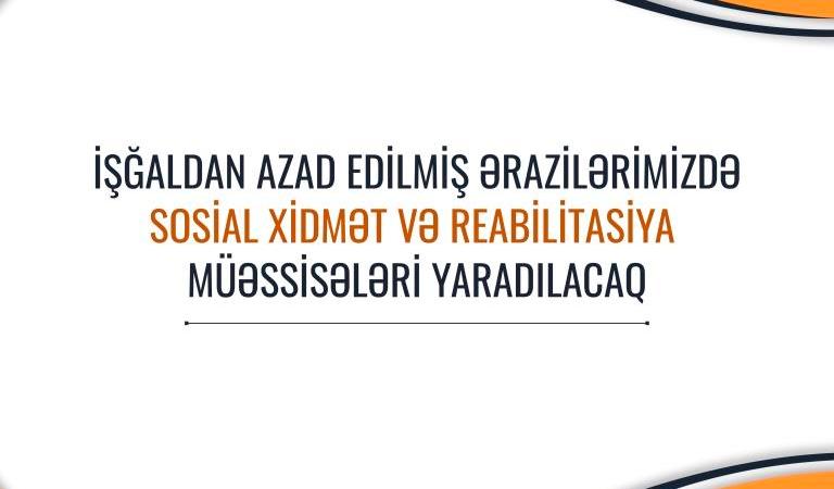 Prezident, Ali Baş Komandan İlham Əliyevin rəhbərliyi ilə müzəffər Ordumuzun işğaldan azad etdiyi ərazilərimizdə geniş miqyasda quruculuq və abadlıq, habelə sosial infrastrukturun qurulması işləri çərçivəsində sosial xidmətlər və reabilitasiya müəssisələrinin yaradılması da təmin olunacaq.