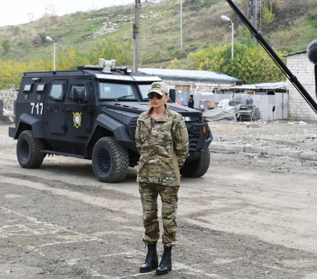 Daha sonra dövlətimizin başçısı və birinci xanım Cəbrayıl şəhərinə yola düşdülər və bu şəhərdə düşmənin hərbi hissələrindən başqa heç nəyin olmadığı qeyd edildi.