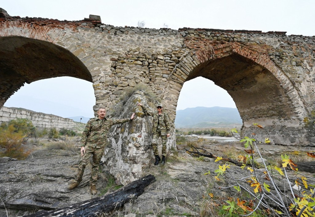 Azərbaycan Prezidenti xanımı ilə birgə Xudafərin körpüsünə gediblər və yolda Azərbaycan vətəndaşlarının düşmən tərəfindən dağıdılmış evlərini görüblər.