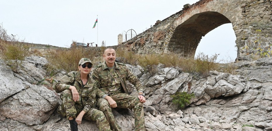 Azərbaycan Prezidenti xanımı ilə birgə Xudafərin körpüsünə gediblər və yolda Azərbaycan vətəndaşlarının düşmən tərəfindən dağıdılmış evlərini görüblər.