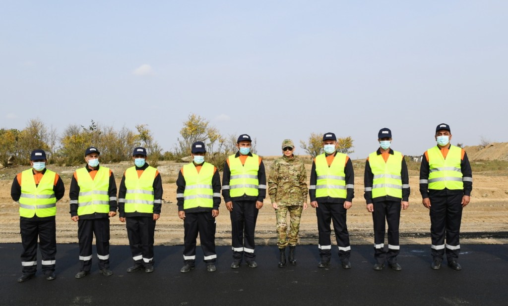 Prezident İlham Əliyev və birinci xanım Mehriban Əliyeva yol işçiləri ilə xatirə şəkli çəkdirdilər.