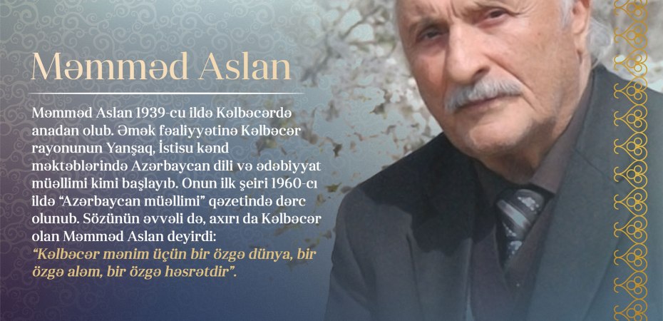 Ədəbiyyatımıza möhürünü vurmuş istedadlı söz adamı olan Məmməd Aslanın şeirlərində Kəlbəcərin bütün təbiət gözəllikləri əks olunub. Dostları onu Kəlbəcərin özü adlandırırdı. Sözünün əvvəli də, axırı da Kəlbəcər idi Məmməd Aslanın. “Heç yuxumdan çıxmır, gözlərimin önündən getmir. Kəlbəcər mənim üçün bir özgə dünya, bir özgə aləm, bir özgə həsrətdir. Kəlbəcər mənim üçün abır-həya, ismət örnəyi kimi qalıb”- deyirdi. Şair bir şeirində “O Kəlbəcər qayıtmaz, qayıtsa yüz Kəlbəcər…”, deyə yazmışdı. Amma bu gün o Kəlbəcər qayıtdı, 27 il sonra işğaldan azad edildi Kəlbəcər…