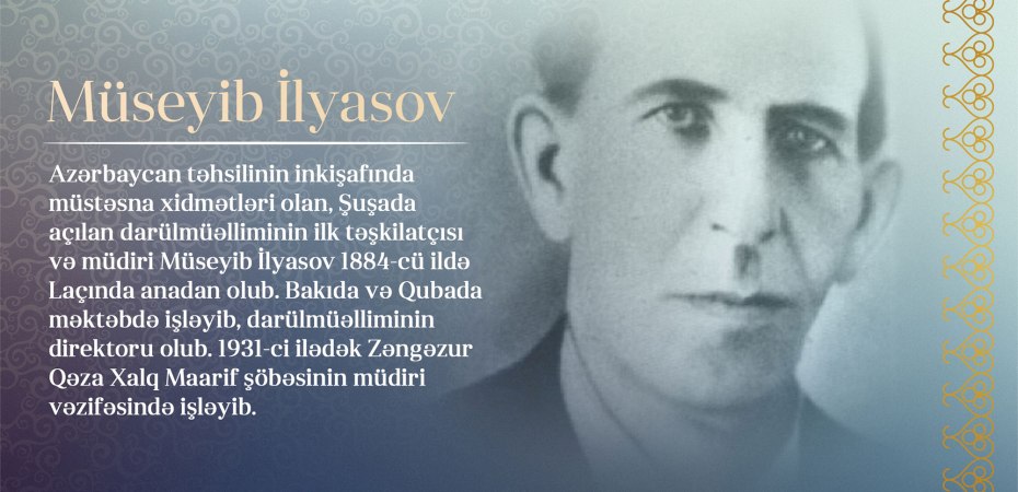 Təhsil Nazirliyinin “Qarabağın məşhur müəllimləri” layihəsinin növbəti tarixi siması Azərbaycanda xalq təhsilinin inkişafında müstəsna xidmətləri olan ziyalı, Şuşada açılan darülmüəlliminin ilk təşkilatçı və müdiri Müseyib İlyasovdur. 1884-cü ildə Laçın rayonunun Oğuldərə kəndində anadan olub.