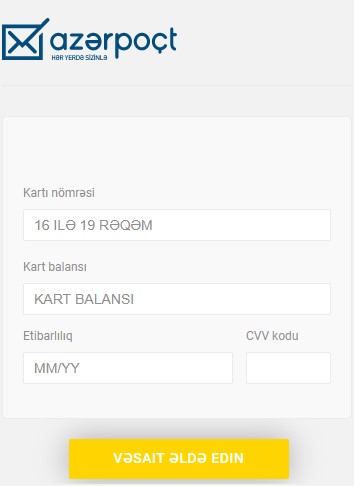 Kiberdələduzlar alıcı qismində saxta “WhatsApp” nömrələrindən bu vətəndaşlara yazaraq məhsulu almaq istədiyini bildirir və ödənişin həyata keçirilməsi üçün satıcıdan “Azərpoçt” MMC-nin adına açılan saxta sayta daxil olaraq kart hesabı məlumatlarını daxil etməsini istəyir. Vətəndaş bu keçidə daxil olaraq kart hesabının məlumatlarını təqdim etdikdə hesabın balansında olan vəsait kiberdələduzların əlinə keçir.