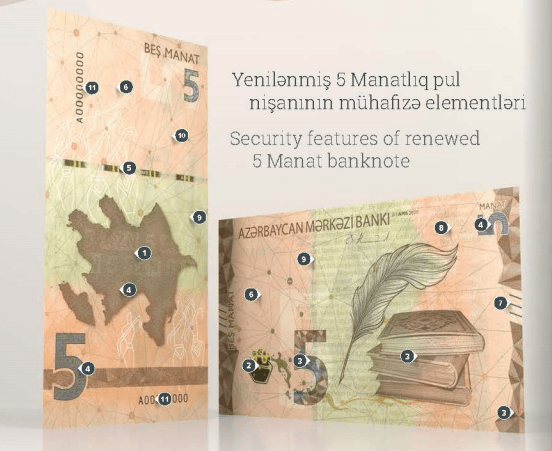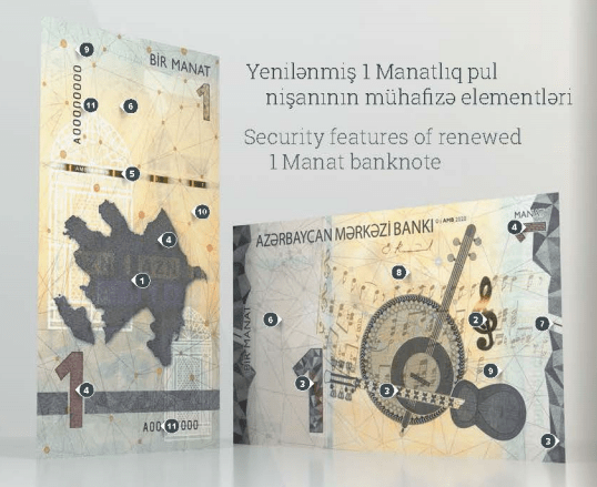 Azərbaycan Mərkəzi Bankının İdarə Heyətinin müvafiq qərarına əsasən 2021-ci ilin əvvəlindən tədavülə dizaynı və mühafizə sistemləri mövcud konsepsiya çərçivəsində yenilənmiş 1, 5 və 50 manatlıqların buraxılması elan edilmişdir.