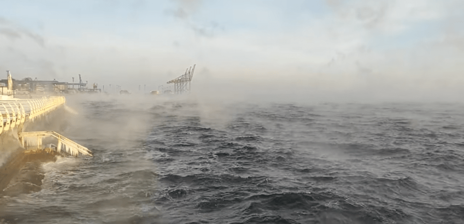 Su sürətlə donmağa başladı və havanın temperaturu (-15 dərəcə) ilə dəniz istiliyində (təxminən 6 dərəcə Selsi) böyük fərq olduğu üçün səthinin üstündə buxar şəklində müşahidə edilə bilən çox miqdarda istiliyi sərbəst buraxdı.