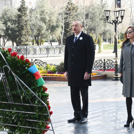 İlham Əliyev Xocalı soyqırımı abidəsini ziyarət edib