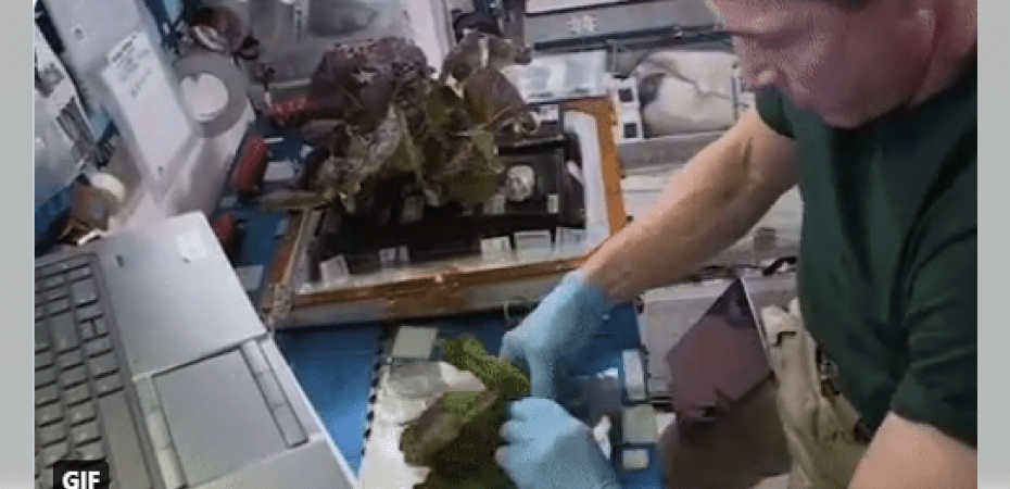 В официальном аккаунте космической программы исследований МКС в Twitter в начале февраля появилось короткое видео о том, как один из космонавтов на борту станции собирает урожай листового салата.