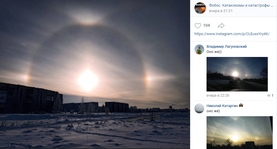 TIME rəsmi mənbəyə istinadən bildirir ki, günəş halo Rusiyanın Yekaterinburq, Orenburq və İvanoqrad şəhərlərində qeydə alınıb.