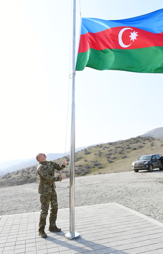 Prezident, Silahlı Qüvvələrin Müzəffər Ali Baş komandanı İlham Əliyev Güləbird kəndində Azərbaycan bayrağını qaldırdı və çıxış etdi.