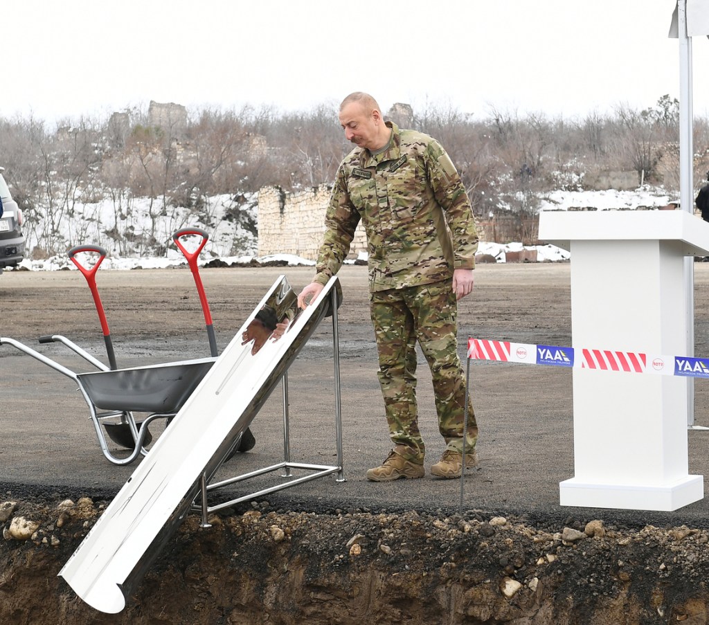 TIME rəsmi mənbəyə istinadən bildirir ki, Prezident İlham Əliyev işğaldan azad edilmiş torpaqlarda Füzuli-Hadrut avtomobil yolunun təməlini qoyub.