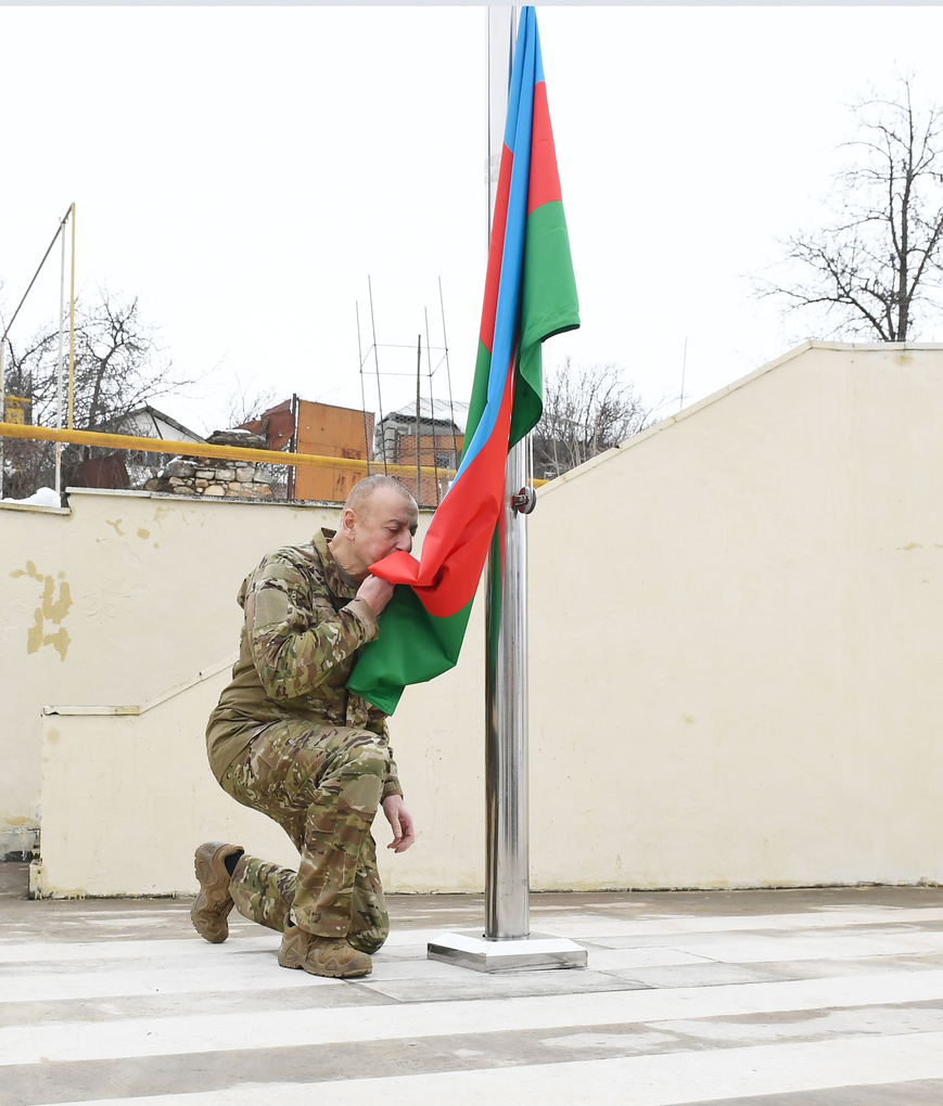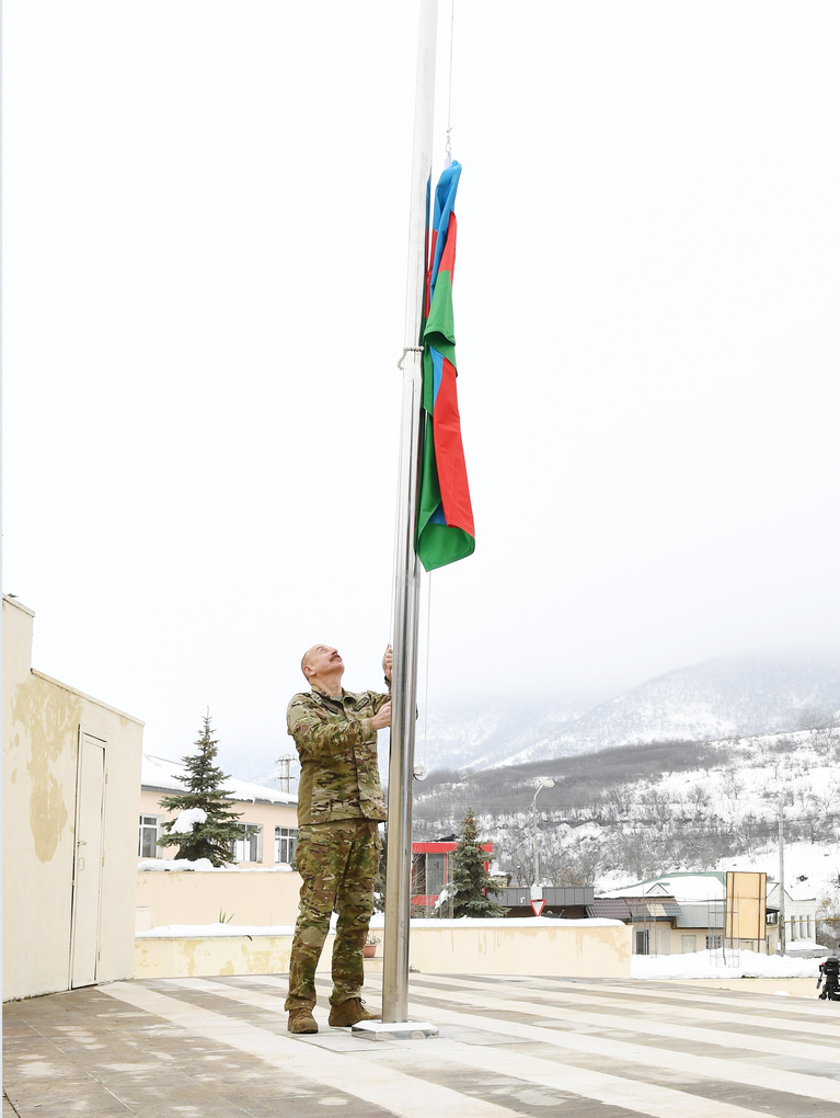 Azərbaycan Prezidenti, Silahlı Qüvvələrin Müzəffər Ali Baş Komandanı İlham Əliyev Hadrut qəsəbəsində dövlət bayrağımızı qaldırdı və çıxış etdi.