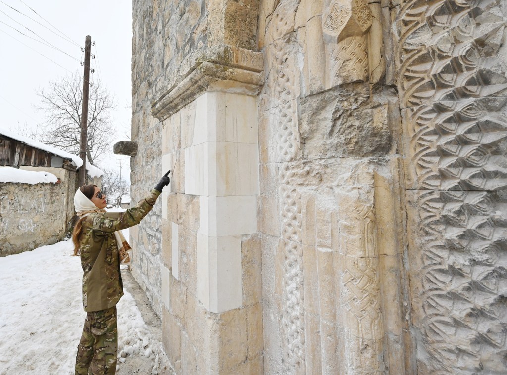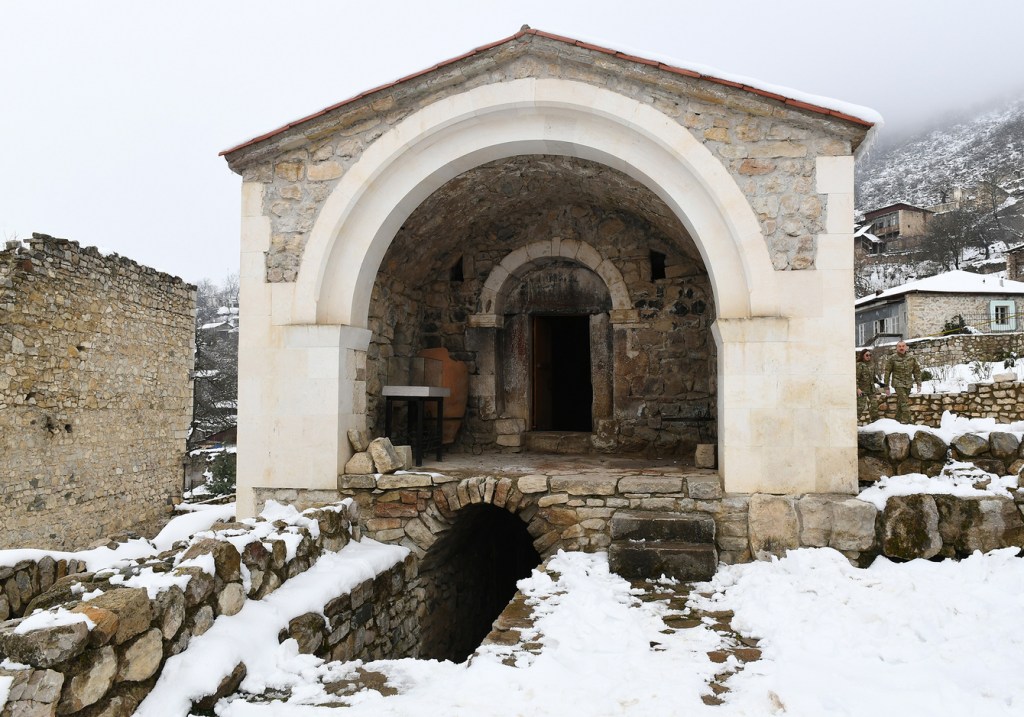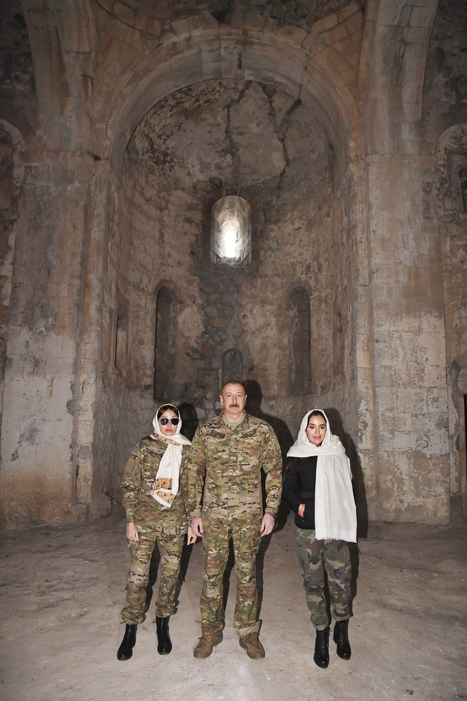 İndi gəlsinlər, baxsınlar Azərbaycanın müxtəlif yerlərində xristian abidələri necə qorunur. Bu qədim Alban kilsəsini görərlər bir müddətdən sonra biz necə təmir etdirəcəyik. Azərbaycan ərazisində bütün dinlərin məbədləri dövlət tərəfindən qorunur, dövlət tərəfindən tikilir və bütün dünya bunu bilir. Ermənilərin vəhşiliyini dünya bilməlidir, görməlidir bizim məscidlərimiz nə gündədir. Azad edilmiş torpaqlarda 67 məscid var idi, cəmi ikisi qalıb, yarıdağılmış. Özü də onlardan müxtəlif məqsədlər üçün istifadə ediblər. Alban kilsəsini də bu günə qoyublar. Bəlkə burada da heyvan saxlayıblar, burada da dəmir-dümür saxlayıblar, orada o dəmir-dümürlərin bir hissəsi qalıb. Ona görə hər kəs bunu görməlidir, bilməlidir. Əgər kimsə bundan sonra bizə qarşı hansısa əsassız ittiham irəli sürmək istəsə, o, cavabını alacaq, necə ki, bu günə qədər alıb.