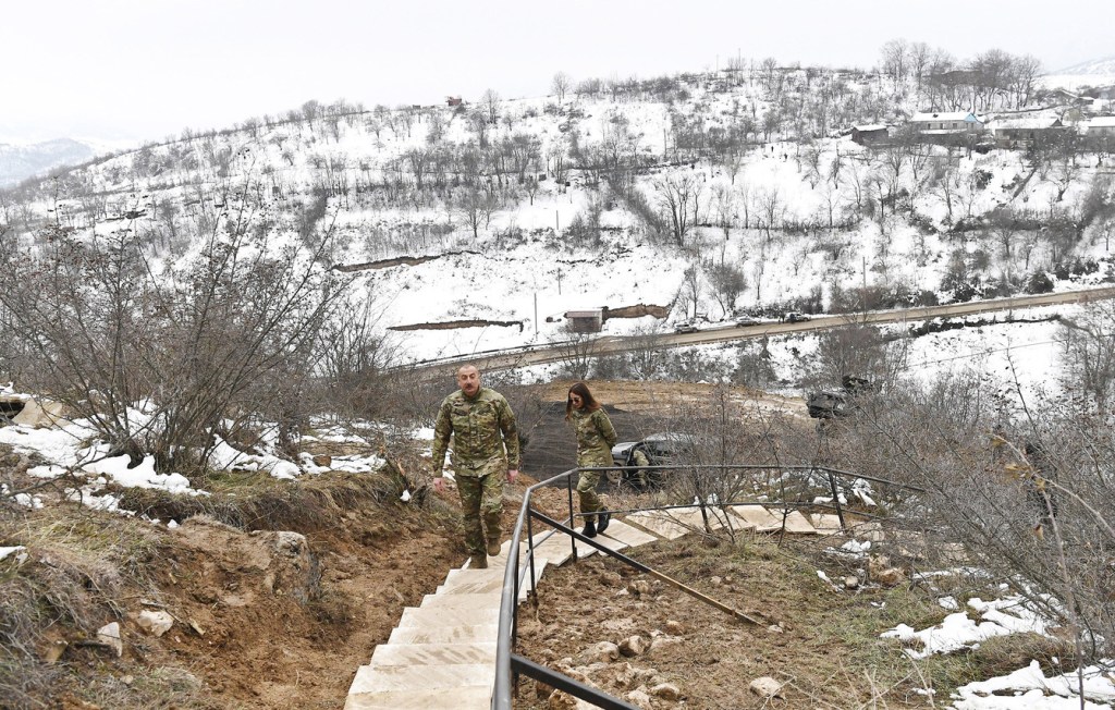 Otuz il torpaqlarımızı işğal altında saxlayan mənfur düşmən bir daşı-daş üstündə qoymayıb. Görün, yollar nə gündədir. Otuz il ərzində bu yollar asfalt görməyib. Onların bütün təbliğatı yalandır, bütün tarixi saxtadır. Özlərini dövlət adlandırırdılar, dırnaqarası “Artsax dövləti” – cəhənnəmə getdi. “Dövlət” idisə, bəs, niyə daş-daş üstə qoyulmayıb? Çünki bilirdilər ki, bu torpaq onların deyil. Bu torpaq azərbaycanlıların torpağıdır.
