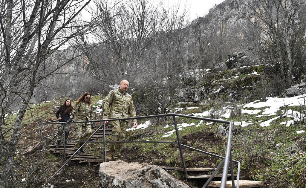 Daha sonra Prezident İlham Əliyev, birinci xanım Mehriban Əliyeva və qızları Leyla Əliyeva Azıx kəndinə yola düşdülər.