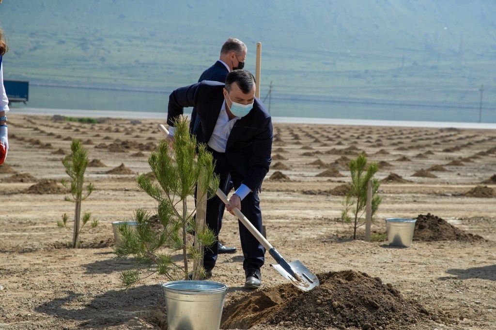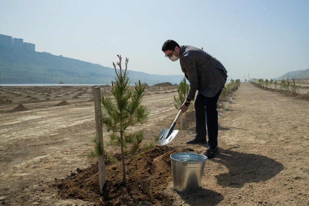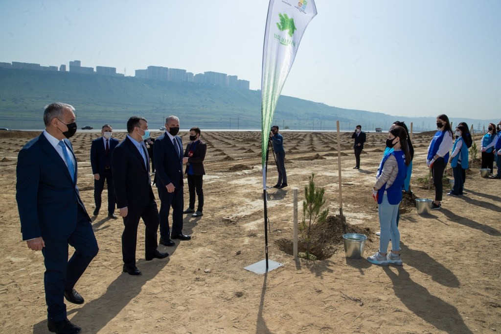 Ağacəkmə aksiyasında Əmək və Əhalinin Sosial Müdafiəsi naziri Sahil Babayev və Ekologiya və Təbii Sərvətlər naziri Muxtar Babayev də iştirak edib.