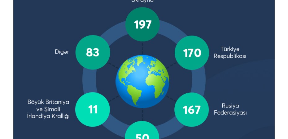 Ölkələr üzrə müraciətlərin sayına nəzər saldıqda Ukraynadan 197, Türkiyədən 170, Rusiyadan 167, Gürcüstandan 50, Böyük Britaniya və Şimali İrlandiya Krallığından 11, digər ölkələrdən isə 83 müraciətin olduğu müşahidə olunur.