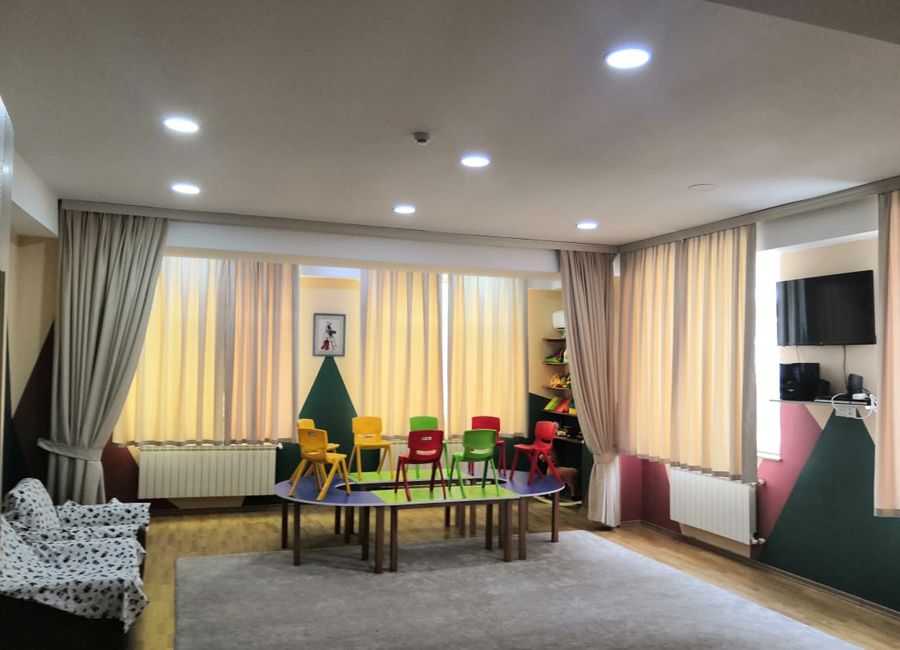 COVID-19 infeksiyasına qarşı müəssisəmiz çox məsuliyyətlə tədbirlər görür. Belə ki, işçilərin 90%-i öz müəssisəmizdə vaksinasiya olunub. Valideynlərin girişdə hərarəti ölçülür, dezinfeksiya olunur, maskalardan istifadə olunmaqla, məsafə saxlamaqla müəssisəyə uşaqlar daxil edilir və mütəxəssisə təhvil verilir. Bu zaman virusun yayılmasının qarşısını almaq üçün lazımi olan bütün tədbirlərdən istifadə olunur. Belə ki, temperatur ölçülür, kiçik belə hərarət varsa qəbul edilmir. Eyni zamanda da ailədə virusa yoluxmuş və ya yoluxmağına dair şübhəli şəxslər varsa 2 həftə müddətində müəssisəyə girişi təxirə salınır. Eyni proses işçilərə də aiddir ki, işçilərimiz pandemiya dövründə qrafik üzrə işə çıxırlar. Müəssisədə hər gün qrafikə uyğun dezinfeksiya işləri aparılır. Əlavə olaraq qeyd etmək istəyirəm ki, müəssisədə yaşayan uşaqlarımız və işçilərimiz il ərzində mövcud dispanserizasiyadan keçirilir, uşaqlara immunuzasiya və vitaminoterapiya aparılır.