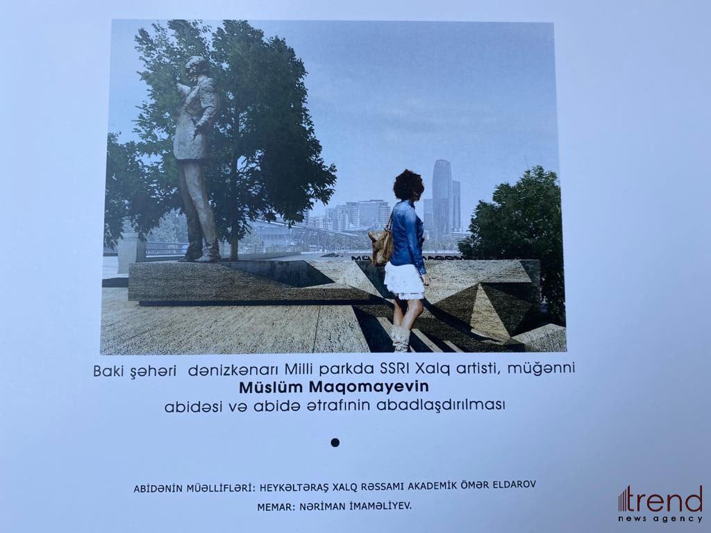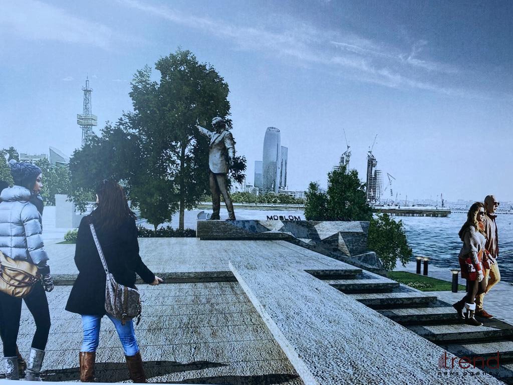 Xalq rəssamı əlavə edib ki, Müslüm Maqomayevin heykəlinin hündürlüyü 2 metr olacaq: “Onun yerləşəcəyi yer isə Dənizkənarı Bulvardır. Biz orada elə bir fon seçmişik ki, heykəl üzü şəhərə, arxası isə Dəniz Vağzalına baxacaq. Heykəlin hündürlüyü iki metr olsa da, seçilən fon ona daha çox hündürlük verəcək, təqribən 5 metr”.