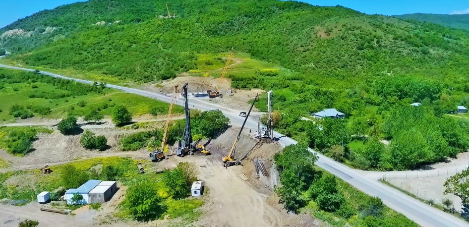 Layihələndirilən yolun 4.5-ci km-də Ağsuçayla və çay vadisi ilə kəsişmədə 1135 metr uzunluqda və 76.5 m hündürlüyündə böyük asma körpü inşa edilir. Hazırda körpünün dayaqlarında qazma və svay bərkitmə işləri, svayların bütövlük və statik testləri, həmçinin dayaqların bəzilərində bünövrələrin tikintisi işləri aparılır.
