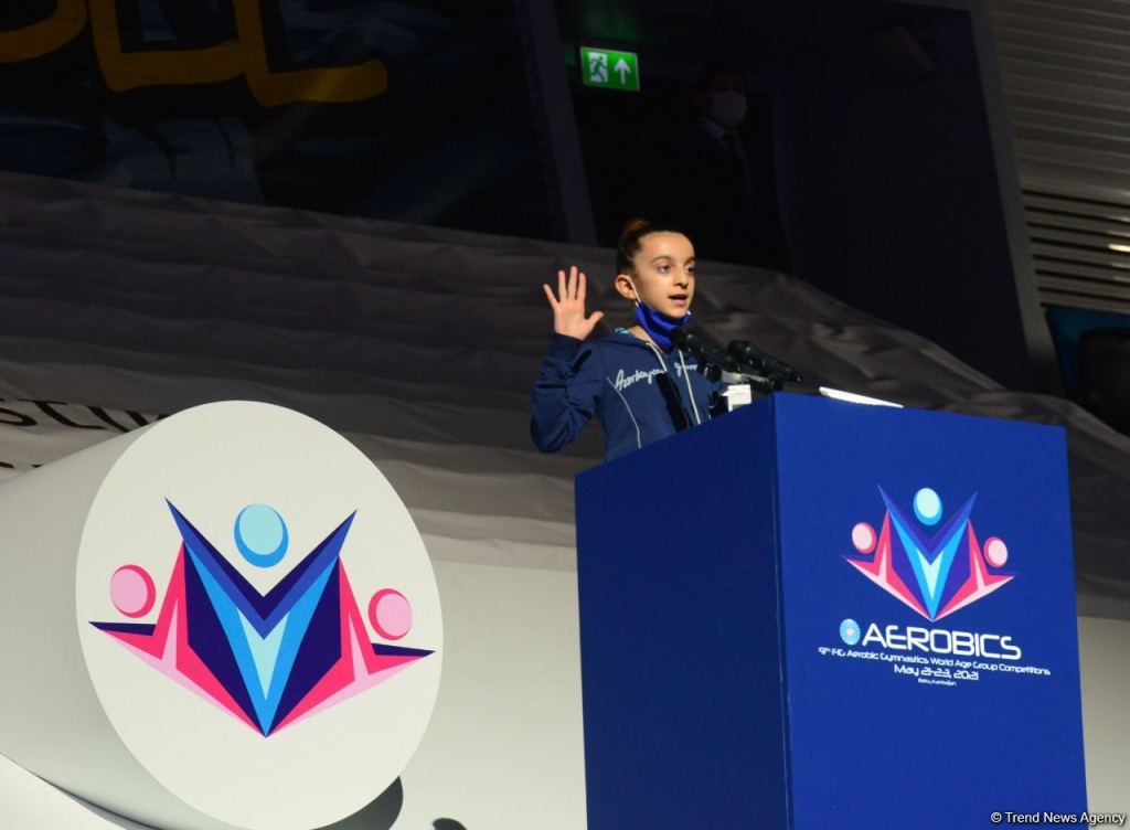 Bakı Milli Gimnastika Arenasında aerobika gimnastikası üzrə 9-cu Dünya Yaş Qrupları Yarışlarının açılış mərasimi keçirilib.