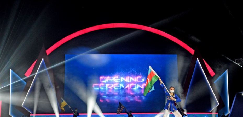Trend-in məlumatına görə, mərasim zamanı idmançıların təmsil etdiyi ölkələrin bayraqları zala gətirilib. Azərbaycanın dövlət himni səsləndirilib.