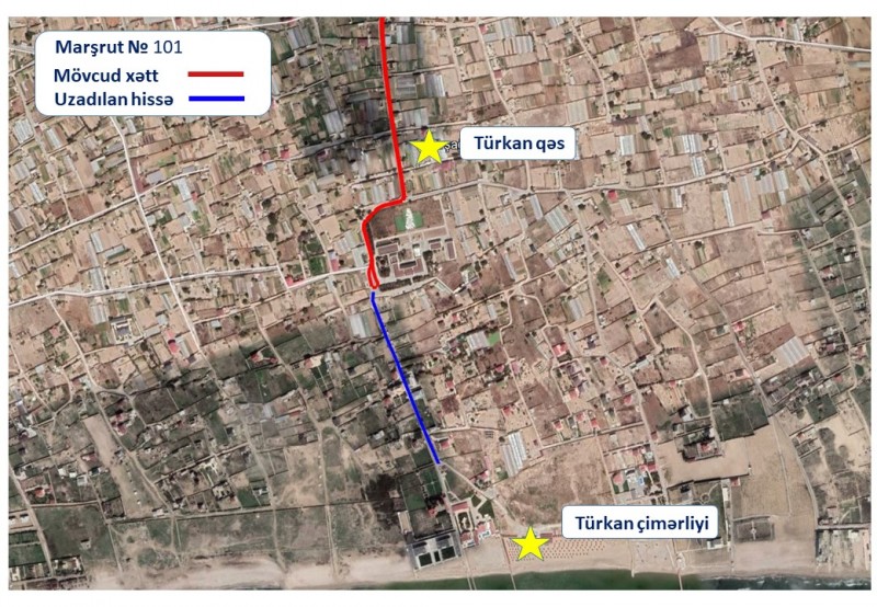- 101 nömrəli müntəzəm marşrutun hərəkət istiqaməti “Türkan” çimərliyinədək;