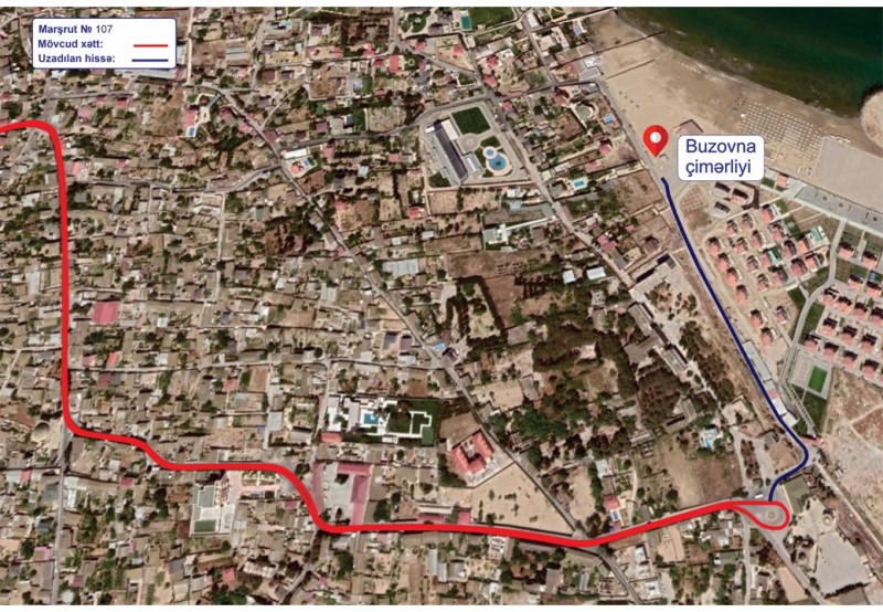 - 107 nömrəli müntəzəm marşrutun hərəkət istiqaməti “Buzovna” çimərliyinədək;