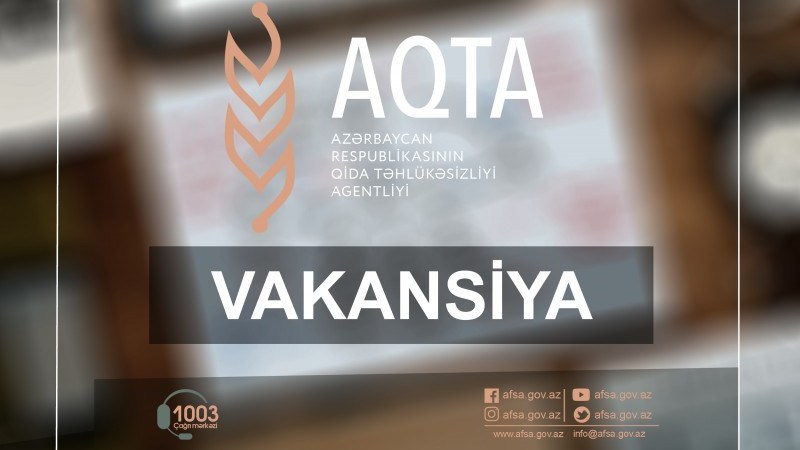 TIME rəsmi mənbəyə istinadən bildirir ki, Azərbaycan Respublikası Qida Təhlükəsizliyi Agentliyinin (AQTA) tabeliyində olan Azərbaycan Qida Təhlükəsizliyi İnstitutu regional bölmələrdə qida təhlükəsizliyi sisteminin səmərəli təşkili məqsədilə Agentliyin fəaliyyət istiqamətlərindən irəli gələrək qida təhlükəsizliyi, baytarlıq və fitosanitar sahələrində çalışmaq istəyən, müvafiq ixtisasa yiyələnmiş və ya beynəlxalq sertifikatı olan ali təhsilli mütəxəssisləri əməkdaşlığa dəvət edib.
