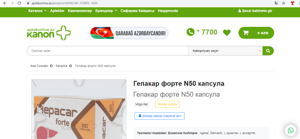 Qeyd edilən qida təhlükəsizliyi sertifikatının verilməsindən imtina olunmuş bioloji fəallığa malik qida əlavələri qablaşdırmalarında və istifadə təlimatının tərtibatında uyğunsuzluq aşkar edilib və bu səbəbdən yerli bazara çıxarılmasına qadağa qoyulub. Onuda bildirməliyik ki, Hepacar Forte xroniki hepatit, xolangit, qaraciyər sirrozu, qaraciyərin piy distrofiyası kimi xəstəliklərin müalicəsi üçün nəzərdə tutulduğu qeyd edilir və yerli apteklərdə bir müddət öncə açıq satışda olub.