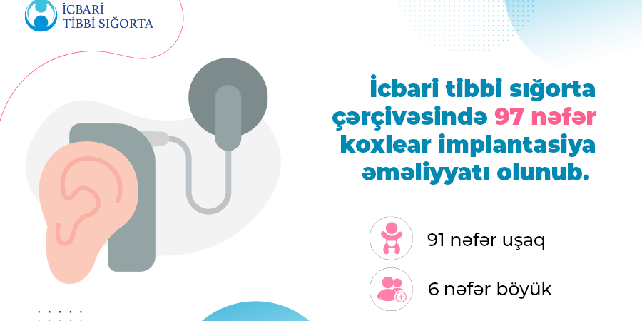 İcbari Tibbi Sığorta üzrə Dövlət Agentliyinə (Agentlik) daxil olan hesabatlara əsasən 2021-ci ilin yanvar-avqust ayları ərzində ölkə üzrə 97 nəfər icbari tibbi sığorta çərçivəsində koxlear implantasiya əməliyyatı olunub.