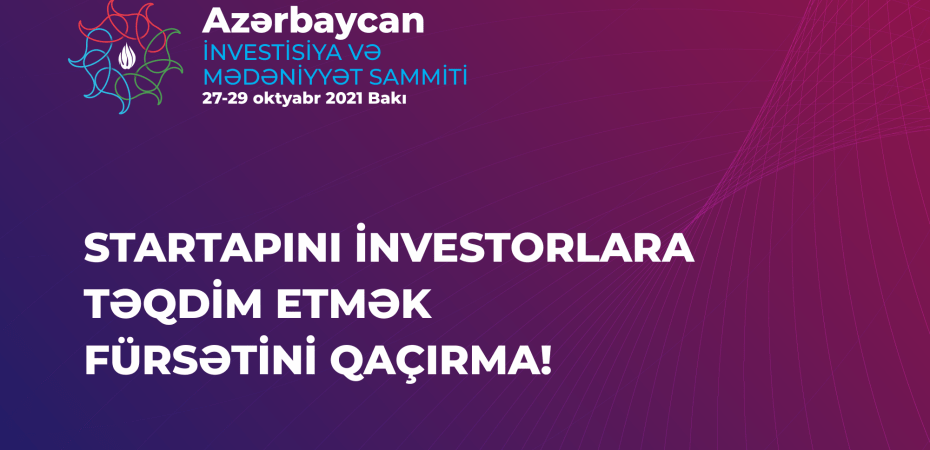27-29 oktyabr tarixlərində Bakıda keçiriləcək Azərbaycan İnvestisiya və Mədəniyyət Sammiti çərçivəsində startaplar üçün xüsusi tanıtım proqramı nəzərdə tutulur.
