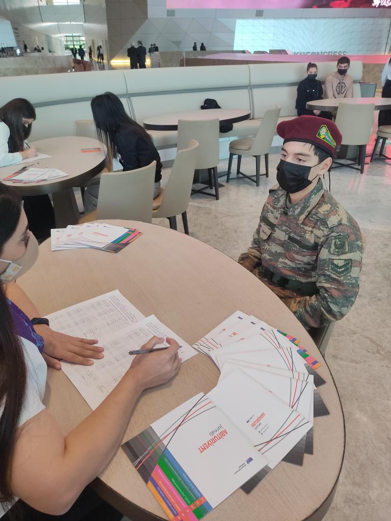 II Qarabağ müharibəsi şəhidlərinin övladlarının təhsilinə kömək göstərmək məqsədilə DİM-in Strateji inkişaf şöbəsinin əməkdaşları tədbirdə iştirak edən şəhid övladlarına anket təqdim edib və onların Dövlət İmtahan Mərkəzi tərəfindən nəşr olunan vəsaitlərə dair ehtiyac və istəkləri qeydə alınıb.